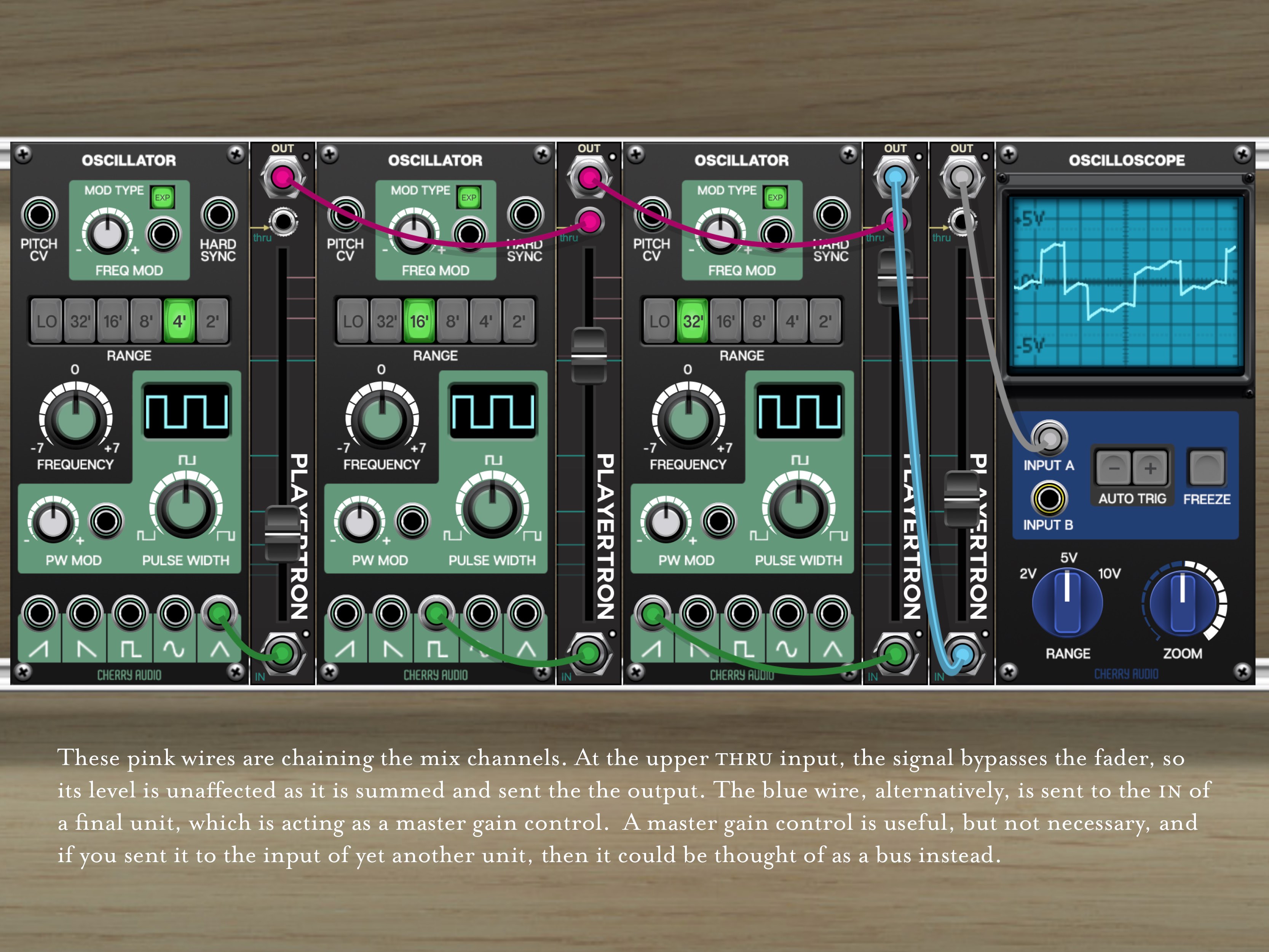 The THRU input offers post-fader summing, so units can be daisy-chained from OUT to THRU of the next unit, without signal degradation. This simplifies wiring, and acts like a decentralized mixer for clearer organization. Chains can also be sent to the input of a successive unit, allowing it to act as a bus/master fader. It’s very flexible and promotes organization.