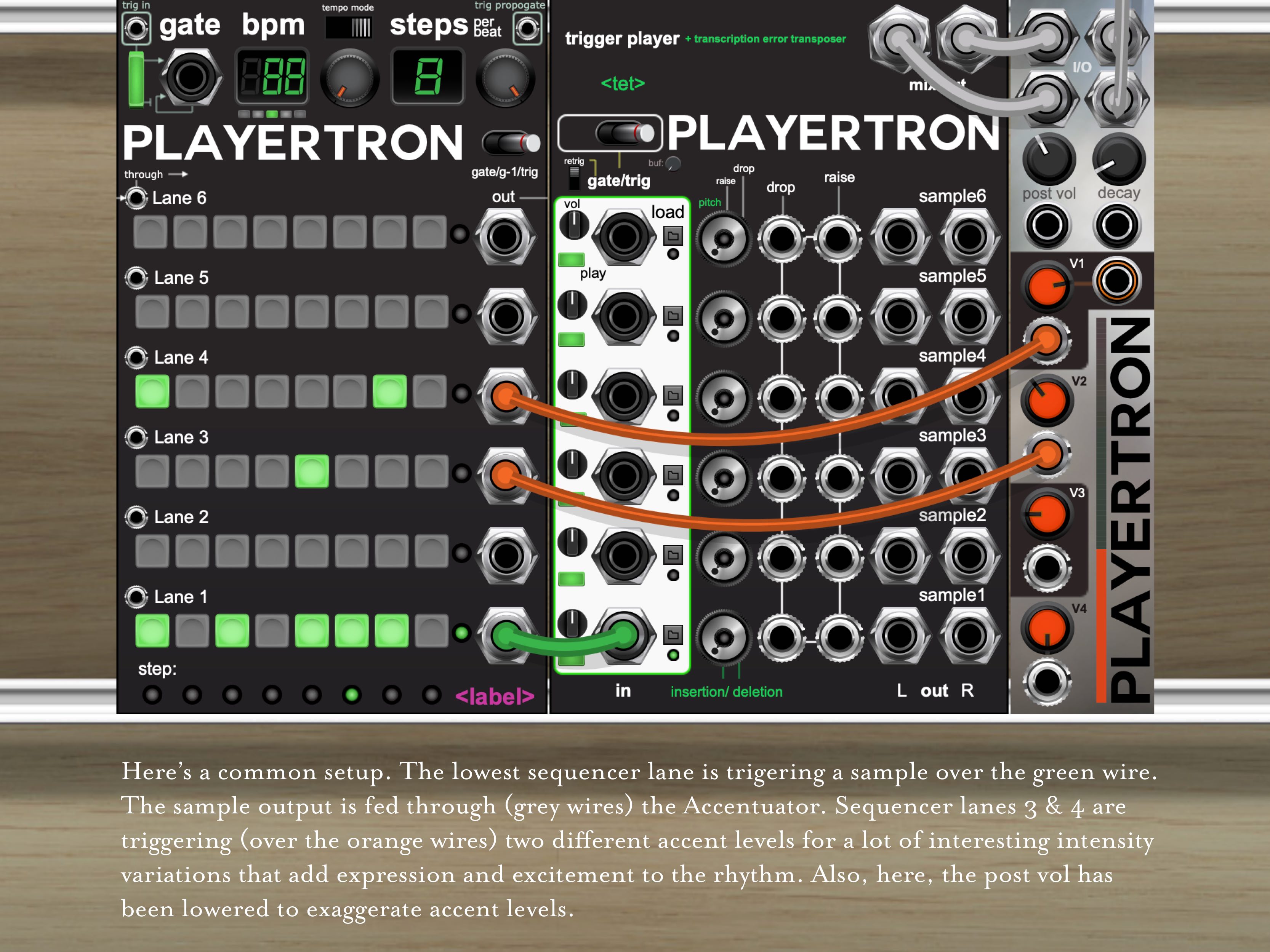 To get further separation from the accented levels, drop the “post vol” to create a contrasting volume baseline. This can also be modulated for even more dynamics.