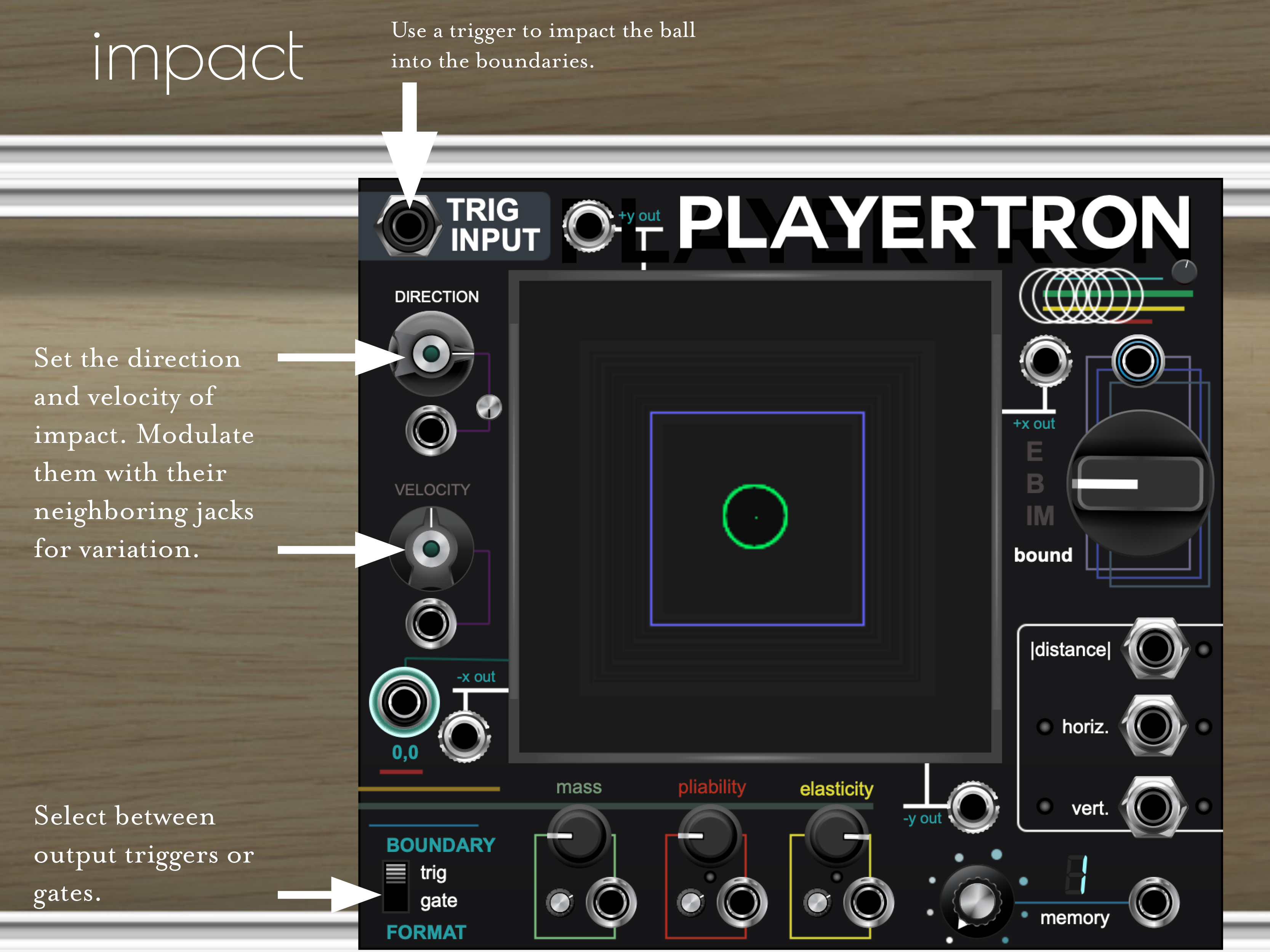 Use the Elastic Boundary Impactor to create organic rhythms and fills, generative sequences, complex modulations, and physics-based variation in your patches.