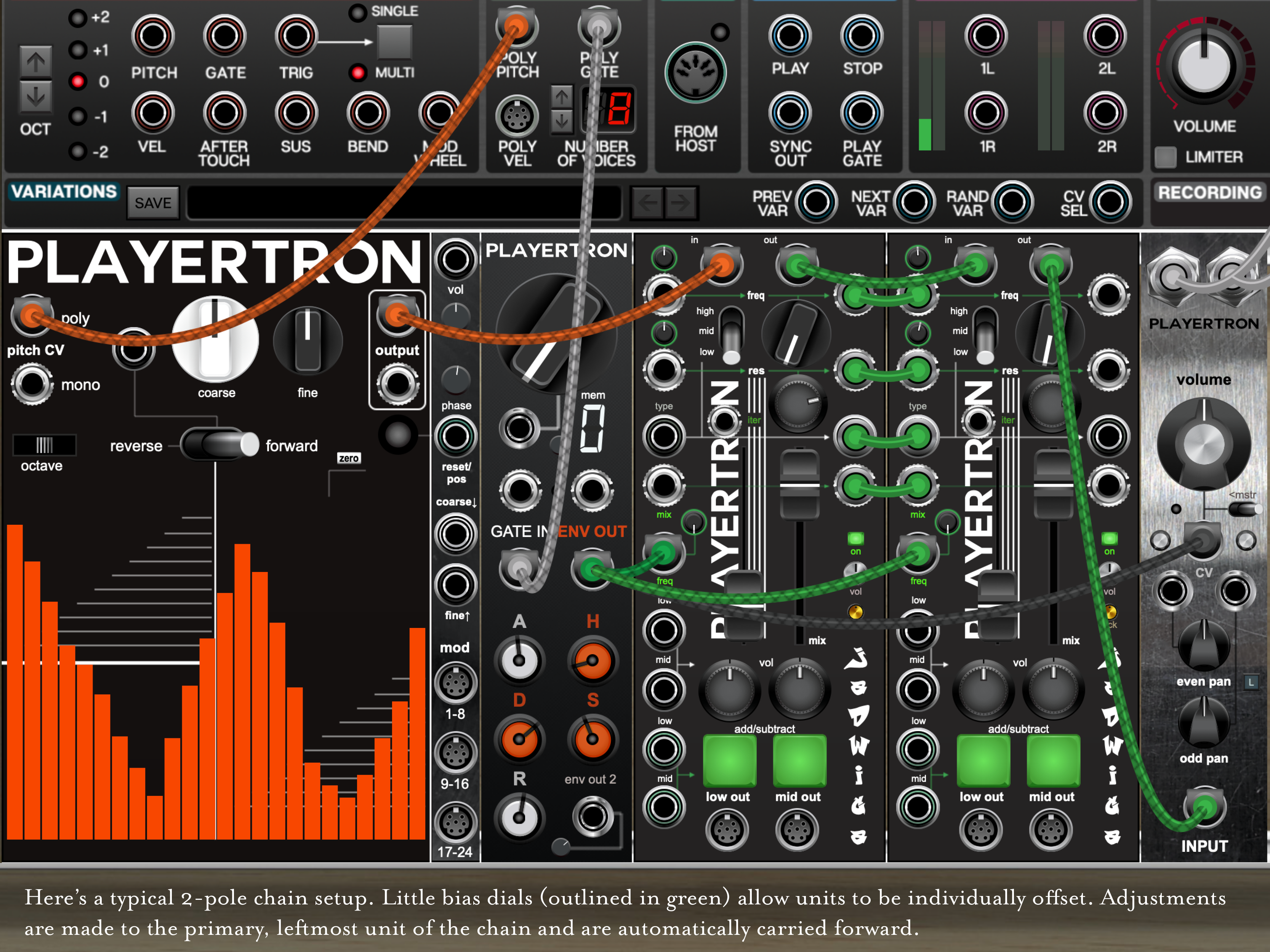 It was developed as a single pole filter that could be chained endlessly, to work as a two-pole, three-pole, four-pole, or any-pole filter, with the first unit controlling the cutoff, resonance, mix, and type of all subsequent units, so that it’s just as easy to control.