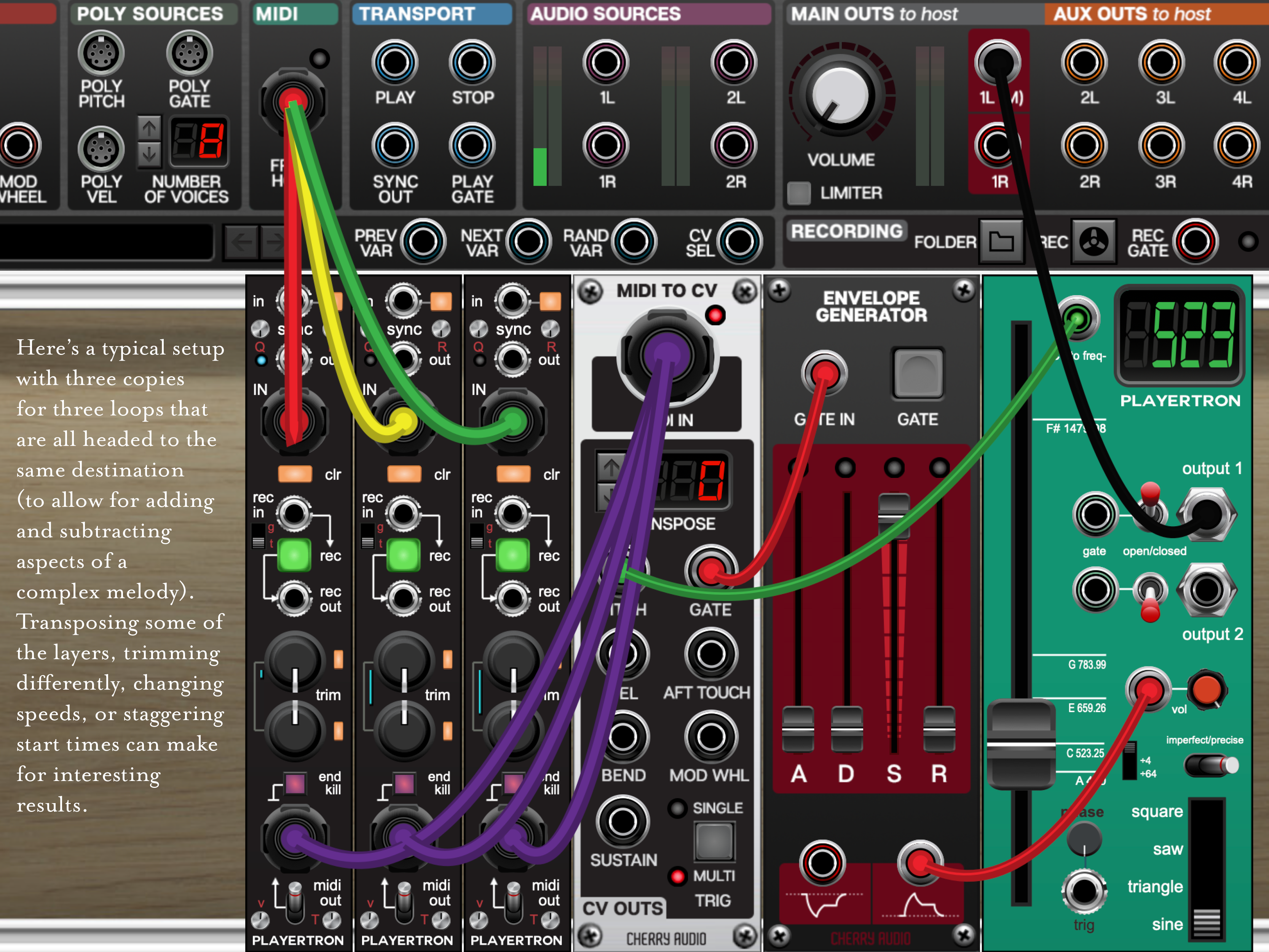 It’s a great way to get a modular setup humming with all sorts of harmonies, and the controls give you the opportunity to for interesting variations where a copied device might be transposed down an octave and sped up to double speed for a fugue-like harmony on another oscillator, for instance.