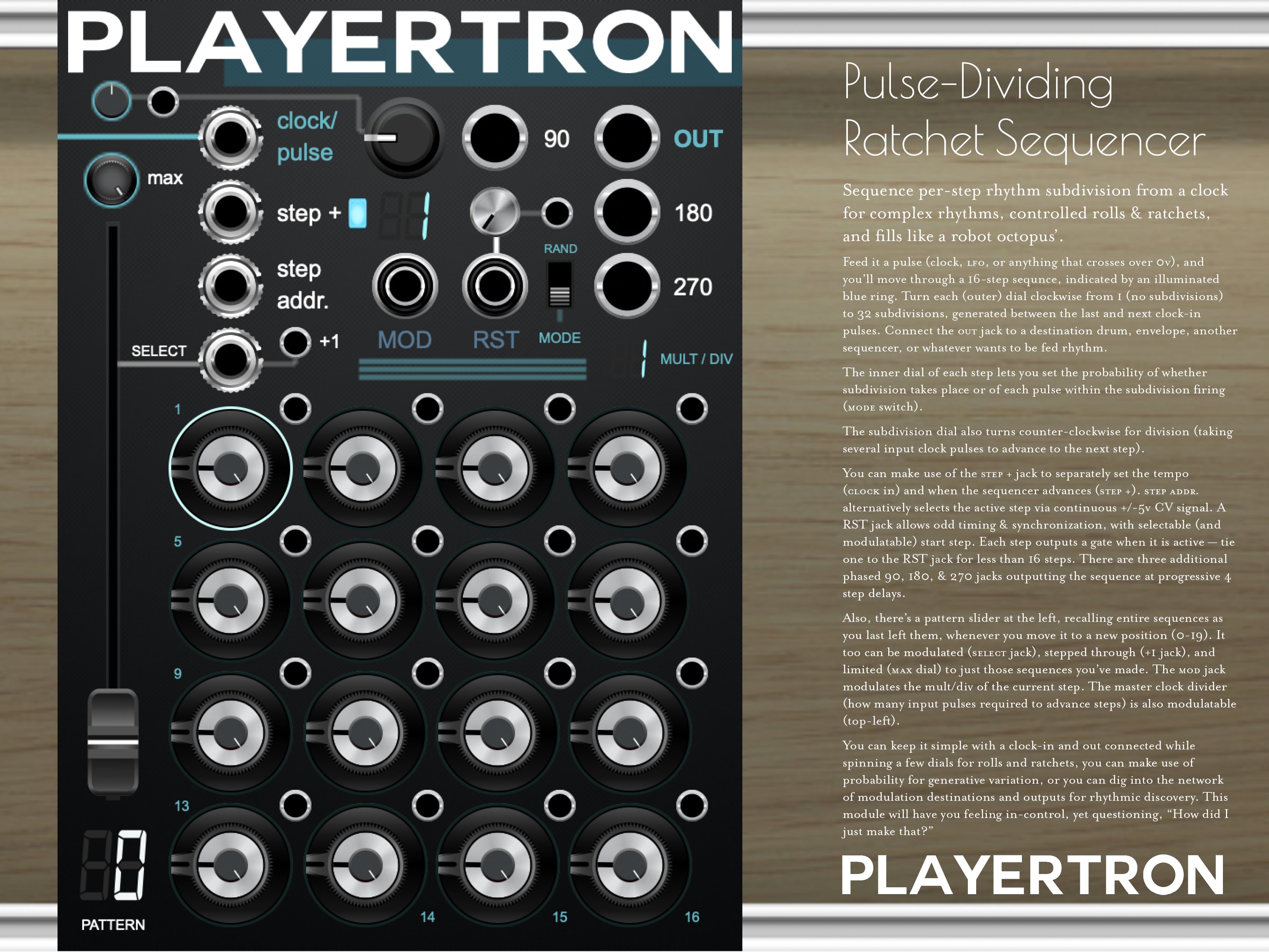 Sequence per-step rhythm subdivision from a clock for complex rhythms, controlled rolls & ratchets, and fills like a robot octopus’.