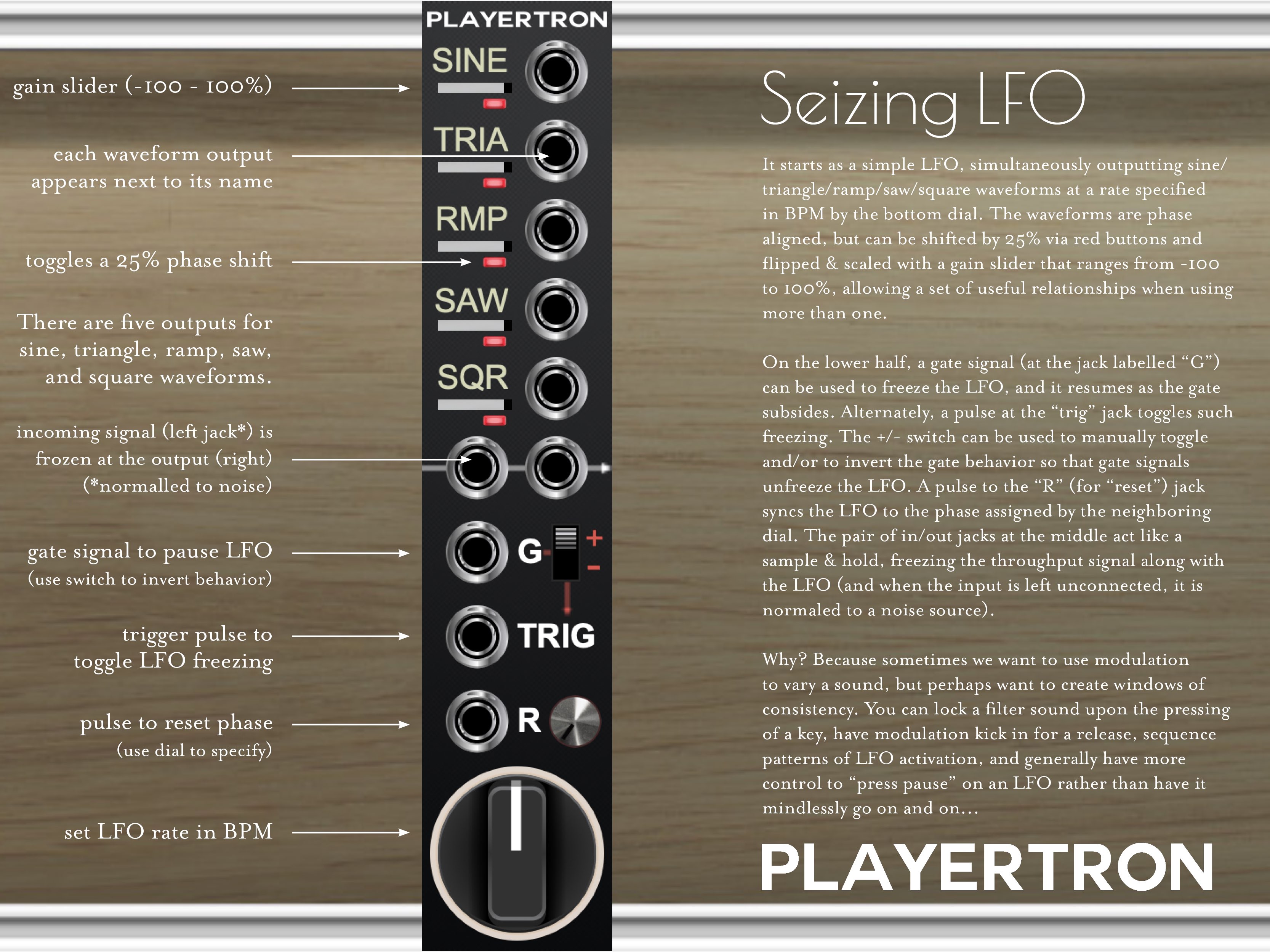 It’s an LFO with a host of convenient features and the ability to freeze & unfreeze with a pulse.
