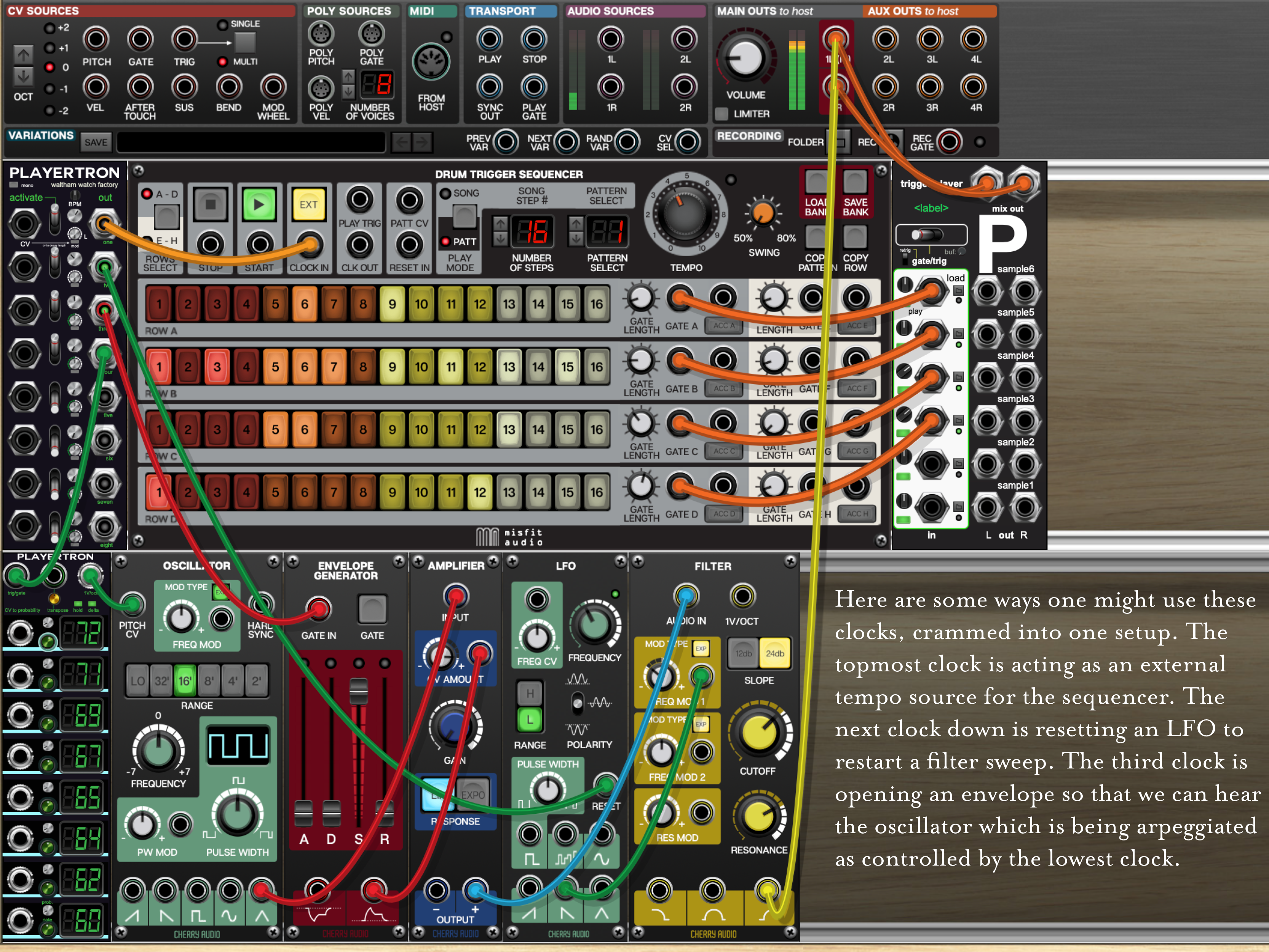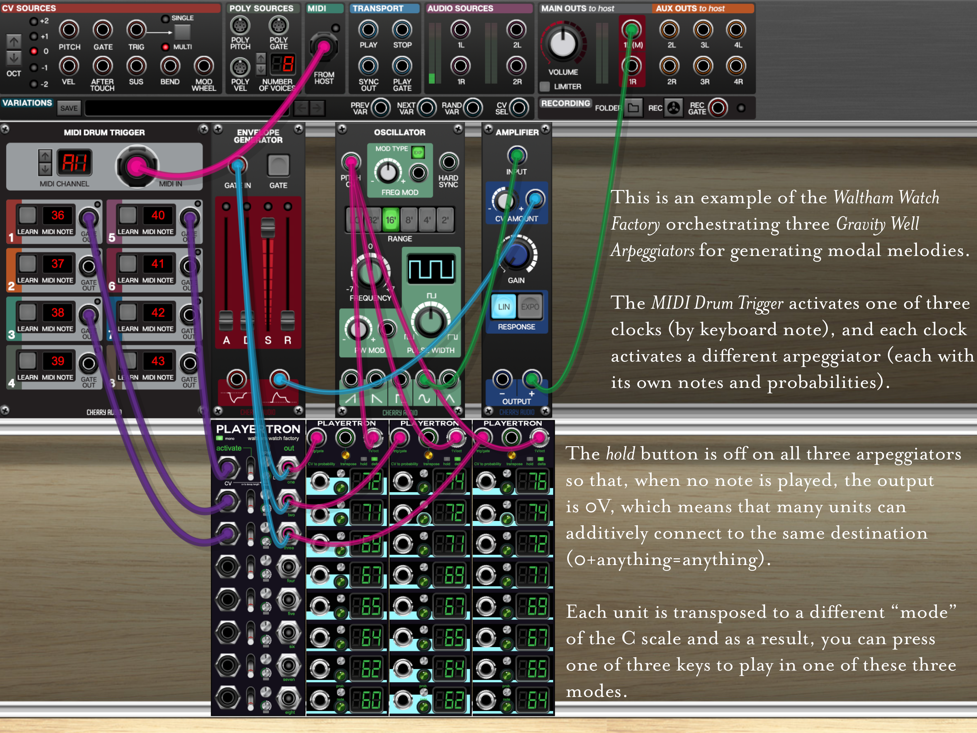 You’ll find yourself clocking LFO resets, sequencers, arpeggiators, and triggered sources to new ends and with greater ease. Try it as a controller for a bunch of Gravity Well Arpeggiators too. It sure is a factory with its assembly line of clocks, and hopefully it honors the craftsmanship of the traditional Waltham watch.